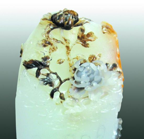 这是一块圆润白洁的个性籽玉,天然包裹着一层美丽的皮色,精致神灵的工艺由深渐浅的表现着美好愿望,丰富的层次点出一个富有意趣的主题,而整体构架艺术的表达出文化内涵,然后就是越玩越散发的丝丝温暖,在掌上、在心中、在回味里……我想,我的作品跟自己的生活、经历、性格和爱好有关,它可能是鸡、鱼、花,也可能是鸟,这就是我梦想的作品,那么生动,那么唯美,那么艺术。