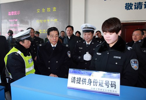2月28日至3月1日,国务委员、公安部部长郭声琨在河北调研。图为郭声琨在固安检查站实地检查进京人员、车辆、物品安检等工作开展情况。(图:张建鑫)
