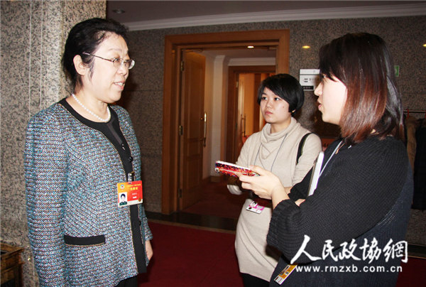 全国政协委员、白求恩国际和平医院专家侯艳宁(左)接受人民政协网记者向佳(中)采访。记者 李木元 摄