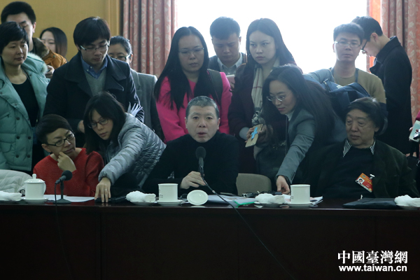全国政协委员冯小刚参加全国政协会议文艺组小组讨论,呼吁繁体字回归课本。(中国台湾网 于斯文 摄)