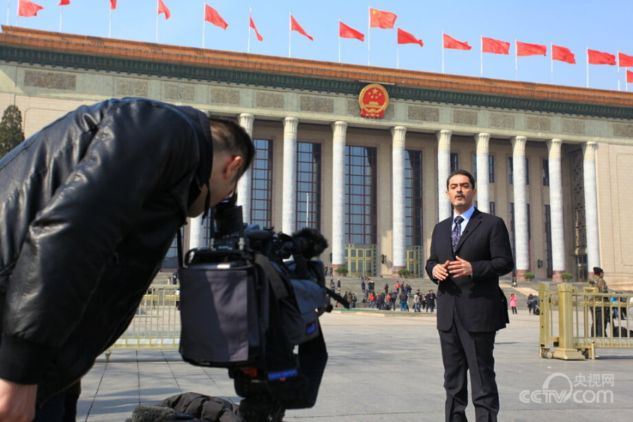 2015年3月5日,北京,十二届全国人大三次会议开幕,穿梭于会场内外的外国记者。