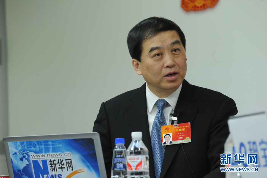 2015年3月6日,全国人大代表、扬州市长朱民阳作客新华会客厅。新华网 贾振 摄