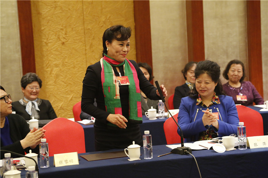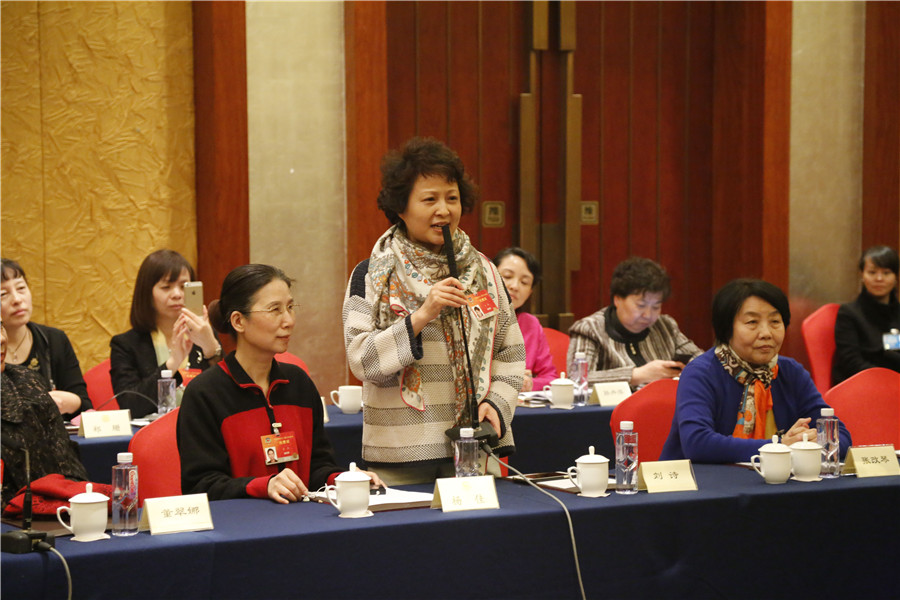 全国政协委员、国家一级演员李瑛演唱歌曲《一杯美酒》,李瑛说,“要把一杯美酒献给全国的姐妹们,祝大家妇女节快乐!”中国青年网记者 孟畅 摄