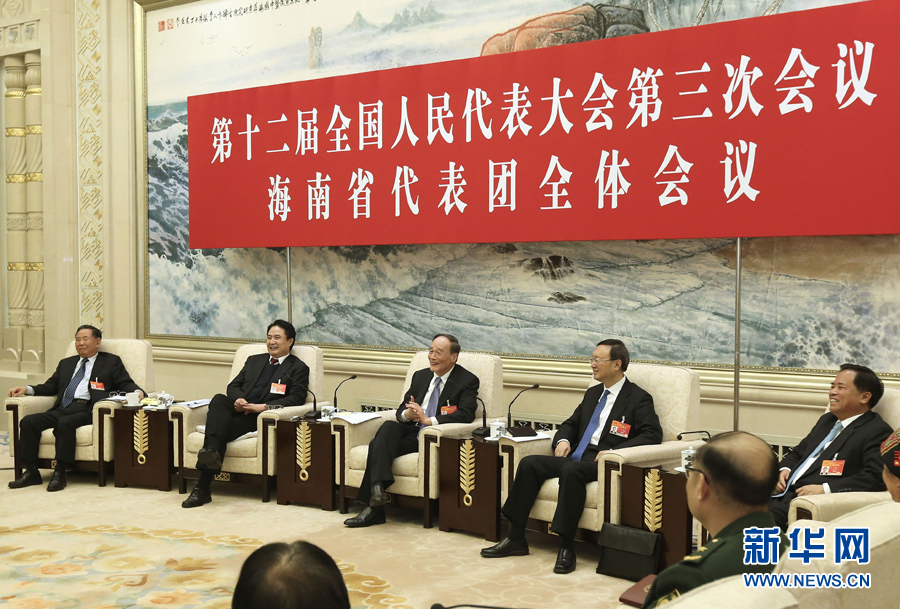 3月8日,中共中央政治局常委、中央纪委书记王岐山参加十二届全国人大三次会议海南代表团的审议。 新华社记者 庞兴雷 摄