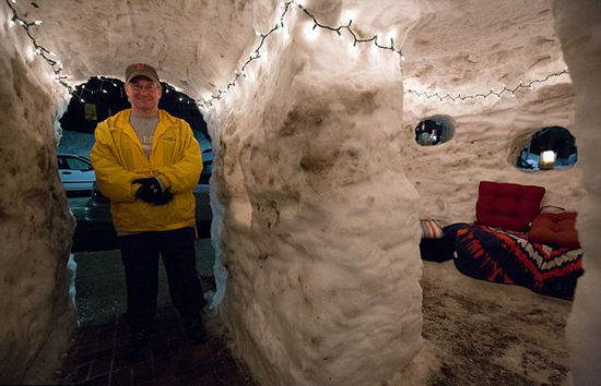 关键词:美国东部频降大雪 马萨诸塞州 雪屋派对 2米高雪屋