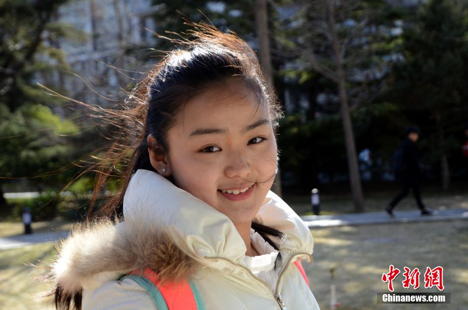3月9日,来自宁夏回族自治区18岁的马婧考试以后,为考场外众人进行才艺表演。 中新社发 李京生 摄 图片来源:CNSPHOTO
