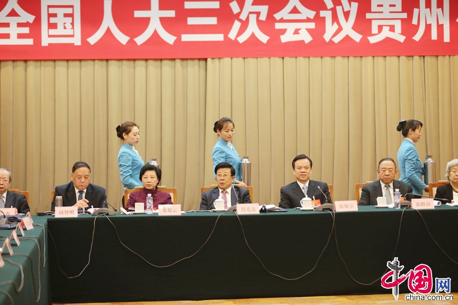 两会现场让你联想到什么?履职的代表、严肃的安保、忙碌的记者……还有呢?3月6日下午,十二届全国人大三次会议贵州团组开放日,见到孙娜的时候是下午四点,此时,她已经工作了近八个小时。据孙娜介绍,前一天她的下班时间是晚上十一点多。孙娜是国谊宾馆会议厅的业务主管,主要负责国谊宾馆20多个会议厅的服务工作。中国网记者 董宁摄影