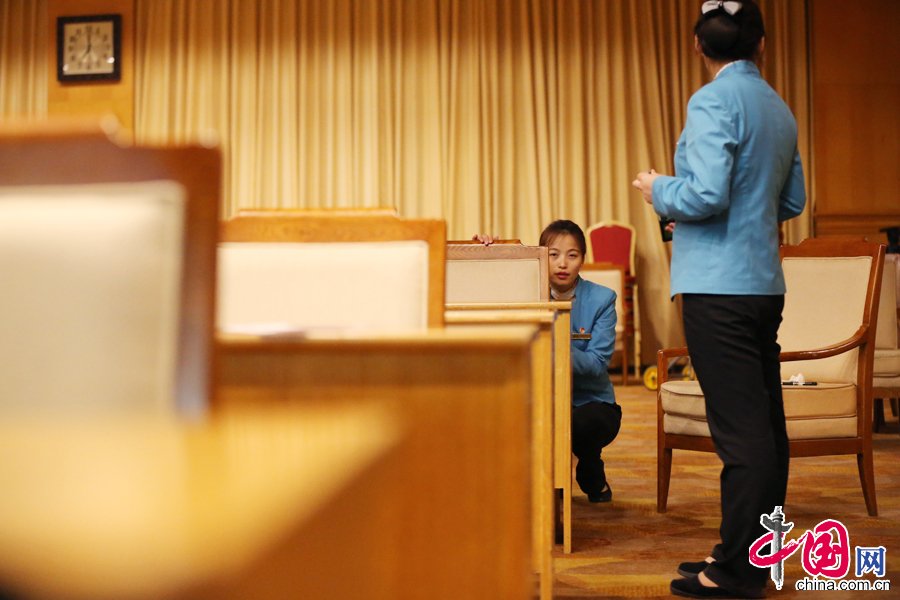 关键词:两会驻地服务员 每天工作17个小时 国谊宾馆