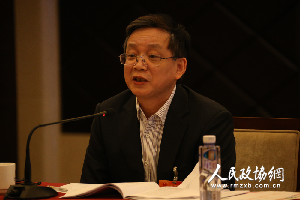 全国人大代表、国家科技部副部长侯建国在小组会上发言。记者杨茜 摄