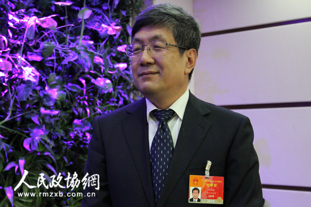 全国人大代表、中国载人飞船系统总设计师张柏楠接受记者采访。李延兵 摄