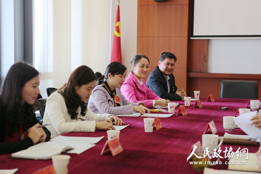 3月11日上午,8位大学生村官人大代表在座谈会上。裴清波摄