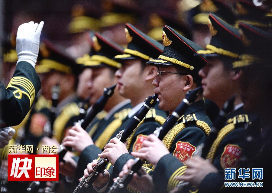 3月13日,全国政协十二届三次会议在北京人民大会堂举行闭幕会。这是军乐团在演奏。 新华社记者陈晔华摄