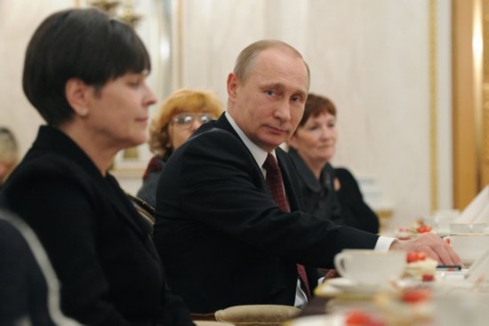 3月8日:普京在克里姆林宫接见俄各界杰出人物的母亲,并祝贺全国妇女节日快乐。