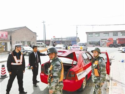 当天上午11时左右,在大营镇一个路口,一组警员正在一辆车中集结。车上有武警和特警,配有枪支和警犬。据了解,该组警员上午在附近完成了一次搜捕任务,正在车中集结等待指挥部下一步指令。
