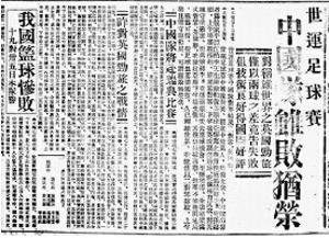 资料图:当时报纸报道《中国队虽败犹荣》。图片来源:人民政协报。