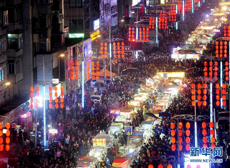 新华社照片,沈阳,2015年3月21日 东北最大夜市沈阳开市 沈阳铁西兴顺特色观光夜市热闹非凡(3月21日摄)。日前,东北最大的夜市——沈阳铁西兴顺特色观光夜市正式开市。该夜市位于沈阳市铁西区,全长约1.8公里,主要包括特色美食区、服饰区、百货区、娱乐区四个区域。新华社发(张文魁 摄)