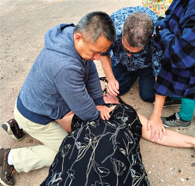 “听到别人呼救,没多想就过去了。”唐子人说,他向家属介绍自己是来自中国的急诊科医生,征求家属同意后,马上进行了胸外按压。在进行心肺复苏的同时,他让其他人拨打911,并一直坚持胸外按压至公园急救人员携自动体外除颤器到达现场。