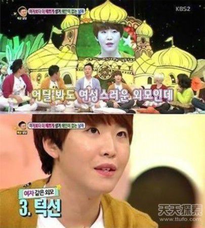 这名韩国男子走上舞台的瞬间,主持人便因其细长的眉毛、女人般的红唇以及圆滑的下巴线条而大吃一惊。就韩国女团T-ara成员咸殷晶也不由感叹:“真羡慕??!”