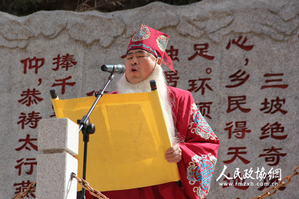 图为“老人倌”宣读开山词。人民政协网记者 宋宝刚 摄