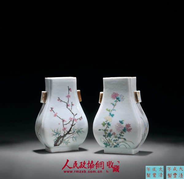 lot4363 清咸丰 粉彩梅兰竹菊四君子图小贯耳瓶一对 嘉德四季第41期拍卖会_副本