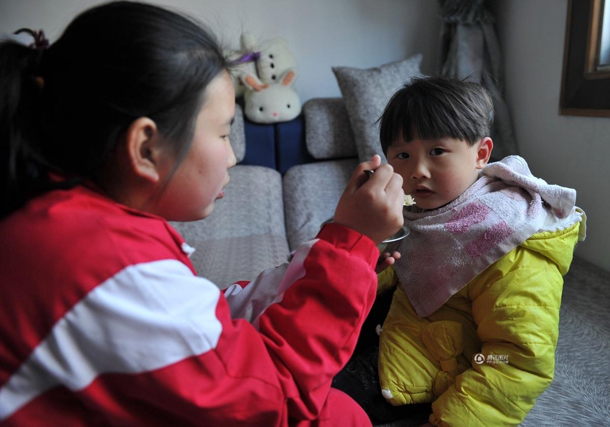 不愿意放弃的徐建华,带着女儿去了北京大学第一医院。在那里,徐雅婷被编号为MLD40,即该院接受的来自全国的第40名异染性脑白质营养不良患者。图为因为智力和手脚能力蜕化,4岁的雅婷每顿饭都要人喂。