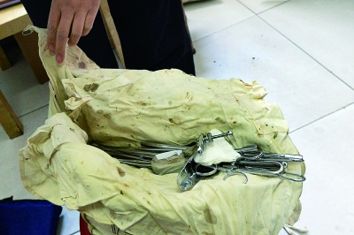 包裹手术用品的布料上沾着已干涸的血?!∩?法制晚报记者 刘畅