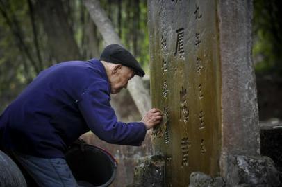 3月30日,清明节前,在四川省仁寿县虞丞乡一个普通村庄里,宋克成正在抹去墓碑上的灰尘。“我们祖祖辈辈还是沾你的光,今天烧点钱给你,再喝点酒,丞相爸爸你还要继续保佑我们宋家顺顺当当的哟。”清扫完毕,宋克成在墓前点上香蜡纸钱,口中絮絮地说道。