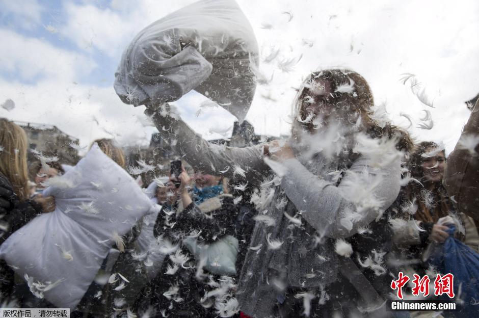 全球多地上演“枕头大战” 场面热烈