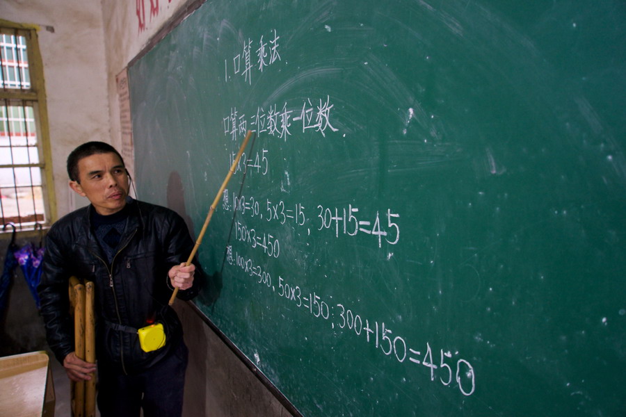 江西省贵溪县盛源村小学58岁的教师黄先文,小时候因患小儿麻痹症,双腿重度残疾。1976年,他成为这里的小学教师,为了能更好地给学生上课,第一天上课便将自己的家搬到教师宿舍。以校为家,至今已有39年。