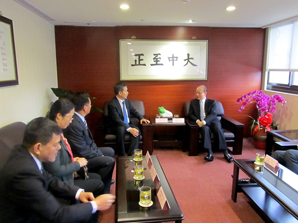 在台期间,参访团拜会了国民党荣誉副主席林丰正先生等国民党知名人士。在与林丰正副主席的交流中,林丰正首先对台盟文教参访团表示热烈欢迎。林丰正回顾了“九二共识”形成的历史背景和过程,分析了两岸发展的现状,并对两岸关系的进一步发展提出了宝贵意见。陈蔚文首先对林丰正副主席表示了衷心的感谢并介绍了台盟组织和服务台胞乡亲的工作情况,他介绍,台盟在发展两岸关系中发挥着独特的作用,全国人大100多名常委中就有3名来自台盟盟员,台盟向中央所提的很多建议也都被中央采用。交流中,与会双方还就两岸经济、文化、教育等话题进行了深入交流。