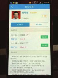 然后进行预约挂号,在“个人中心”点击“我的预约”,再选择“去挂号”,或者登录APP后,在登录界面点击“挂号预约”,然后选择院区,因为是在城北新院门诊部,所以选择它。紧接着,弹出“科室选择”,记者选择“心脑病科”,再选择“杨思进”,出现两个可预约时间,点击其中一个,在“挂号人”处填写就诊者姓名,由于现在还不支持在线支付,因此在“支付方式”处选择“现场支付”即可。