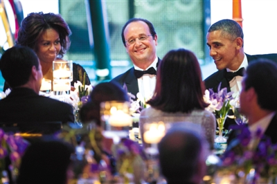 2014年2月11日,美国华盛顿,奥巴马夫妇设国宴为来访的法国总统奥朗德接风。