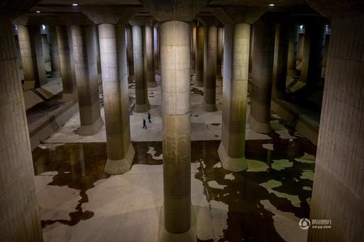 当地时间2015年4月8日,日本东京,世界上最大的地下排水系统——“首都圈外围排水系统”。它建造于1992年至2006年之间,共耗资30亿美元,堪称世界上最先进的下水道排水系统。全长6.4公里,排水系统包括5个高65米、宽32米的巨型竖井,竖井之间由内径约10米的管道连接起来。前4个竖井里导入的洪水通过下水道流入最后一个竖井,集中到由59根高18米、重500吨的大柱子撑起的巨大蓄水池中。日本人将这个长177米、宽78米的蓄水池称作“地下神庙”。“地下神庙”曾经在多部电影和戏剧中出现过。
