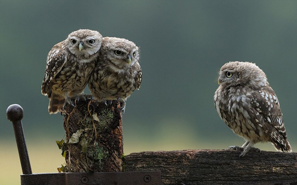 摄影师在6米开外的隐蔽处完整记录下了这一幕。当时,两只小猫头鹰紧紧贴在一起站在一处枯树桩上。旁边的小猫头鹰看上去非常怜人,好像十分羡慕他们兄弟间的亲密接触。只见它亦步亦趋来到他的两兄弟面前,伸出爪子,挠挠兄弟的翅膀,一副“求抱抱”的姿态。