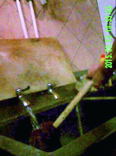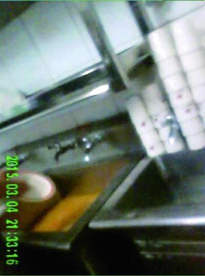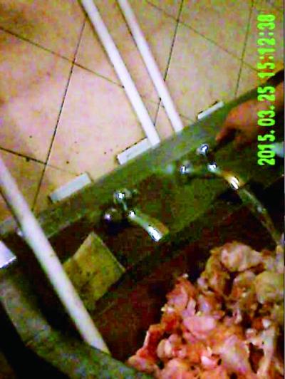 3月13日清洗墩布的水池,3月25日该水池被用来浸泡鸡翅根 摄/本报暗访组