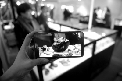 摊主展示被盗翡翠石照片。京华时报记者陶冉摄