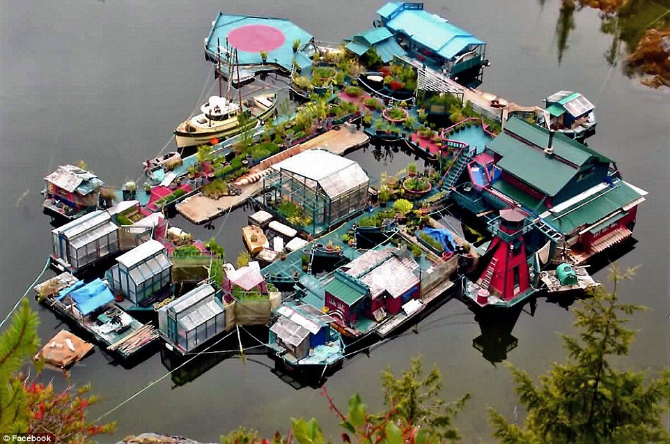 据英媒报道,一对加拿大夫妇韦恩.亚当斯和凯瑟琳.金抛弃了繁华的城市生活,来到不列颠哥伦比亚省的托菲诺区附近的海湾,自己建造了水上房屋和花园,并称其为“自由湾”,过上了丰富多彩的自给自足的生活。此建筑是由12个平台支撑的木制房屋,蔬菜温室和生活空间可以通过木头的浮力浮在水面上。
