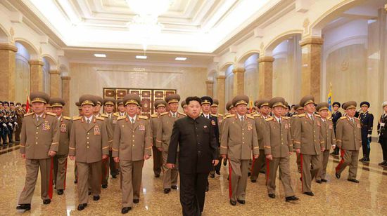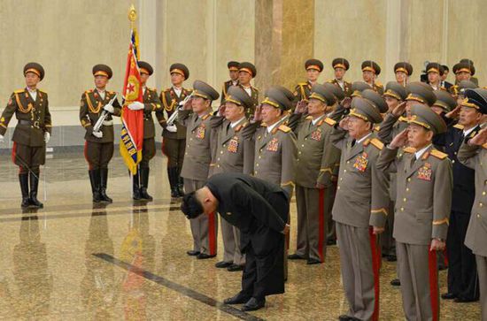 国际在线专稿:据朝鲜《劳动新闻》4月15日报道,4月15日是朝鲜已故最高领导人金日成诞辰103年纪念日,也是朝鲜最盛大的节日“太阳节”。当地时间15日零时,朝鲜最高领导人金正恩拜谒安放着金日成和金正日遗体的平壤锦绣山太阳宫。朝鲜人民军总政治局局长黄炳誓、朝鲜人民军总参谋长李英吉、国家安全保卫部长金元弘等朝鲜武力机关高层人士陪同拜谒。
