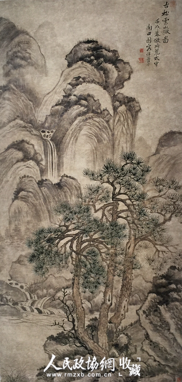 《古松云岳图》。清初恽寿平作,纸本,南京博物院藏。
