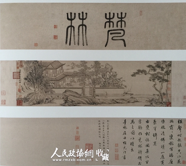 “庞氏画,我局(国家文物局)在第二批单中,又挑选了23件,兹将目录附上:‘非要不可’单中,最主要者,且实际‘非要不可’者:不过 (一)沈周《落花诗图卷》,(二)文徵明《张灵鹤听琴图卷》,(三)仇英《梧竹草堂图轴》,(四)仇英《蓬莱佩弈图卷》,(五)仇英《江南水田卷》,(六) 陆治《瑶岛接香图轴》等六件而已,因此间明清的画,至为缺少也……”