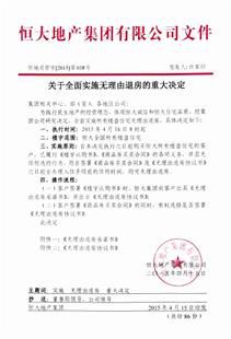 恒大地产集团无理由退房执行文件