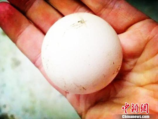图为农户母鸡产下的圆鸡蛋,机率仅10亿分之一?!『渭医∩?/span>