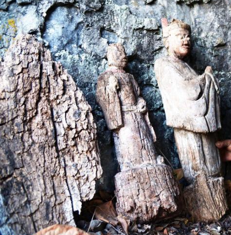 2015年4月13日,重庆市云阳县上坝乡发现罕见“绝壁木雕”。该“绝壁木雕”位于上坝乡生基村2组轿顶山旁边的大腰线悬崖上,共12尊木雕,大部分保存完好,而木雕上的镀金已经脱落。