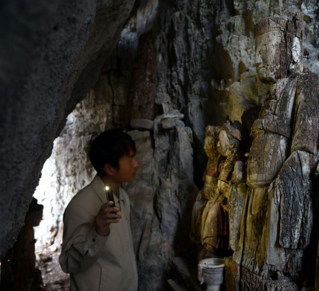 重庆发现罕见镀金“绝壁木雕”