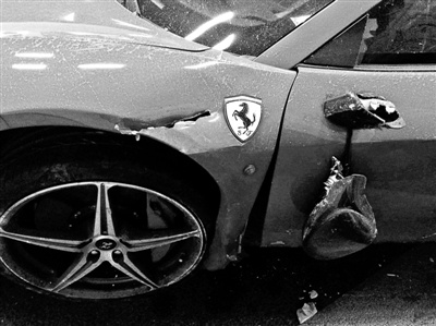 于某驾驶的法拉利车门损毁