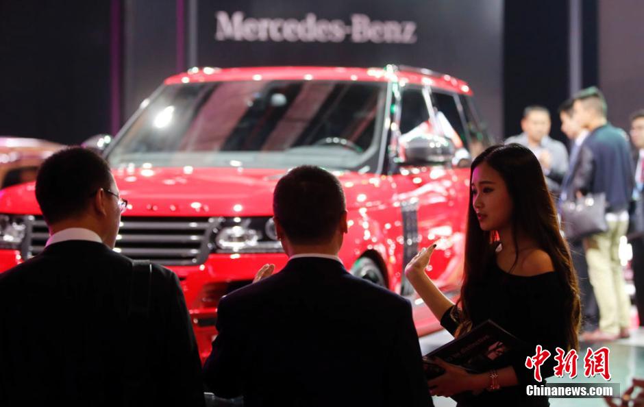 4月20日,2015上海国际汽车工业展览会开幕。由于今年车展取消了车模展示,因此部分厂商将原来的职业模特稍加培训,转型成礼仪小姐和销售顾问来招揽观众。 汤彦俊 摄