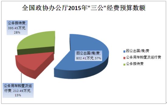 全国政协办公厅2015年"三公"经费预算数1,410.35万元,其中: