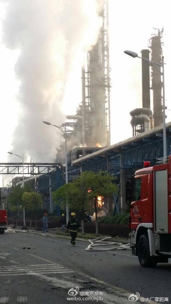 接报后,南京市消防部门立即组织现场扑救工作,目前现场看不到明火。据初步监测,事故暂时未对大气环境造成太大影响,也无废水外排,目前对水体没有造成影响。