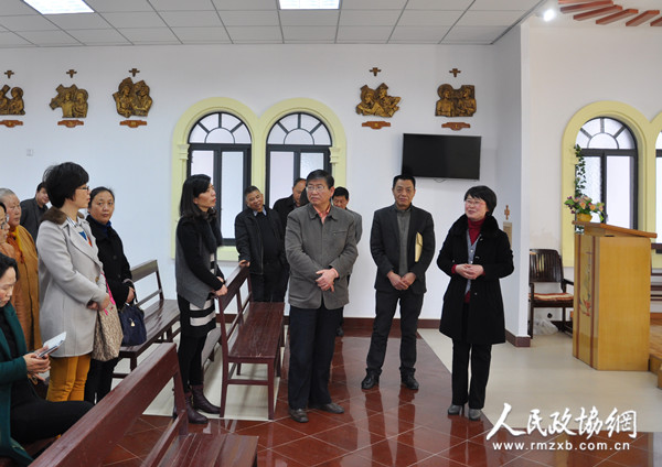 3月26日,安徽省黄山市屯溪区政协组织部分政协委员视察天主教堂,并就做好全区民族宗教工作,提出建议和意见。图为委员视察天主教堂 。(胡新棠/摄)