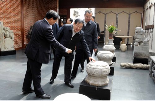2015年4月16日上午,全国政协副主席、致公党中央主席、科技部部长万钢一行视察了位于安徽省蚌埠市龙子湖畔的中华古民居博览园。